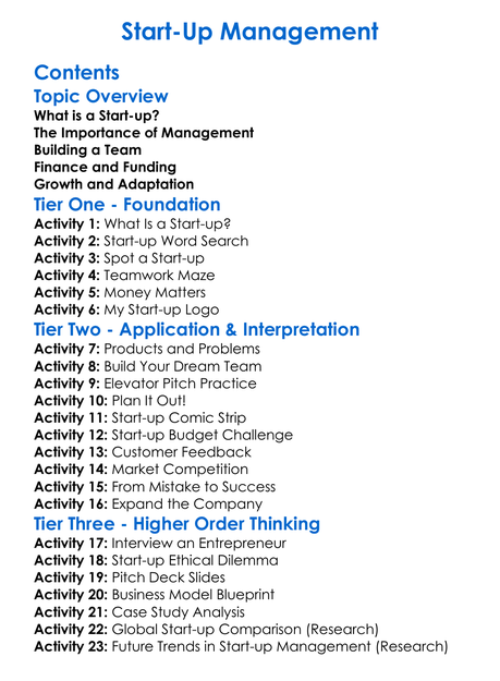 Start-Up Management Worksheet Activity Booklet