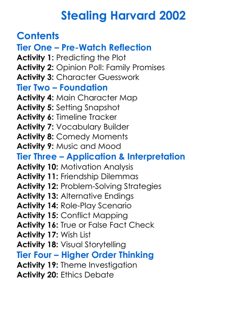Stealing Harvard 2002 Worksheet Activity Booklet
