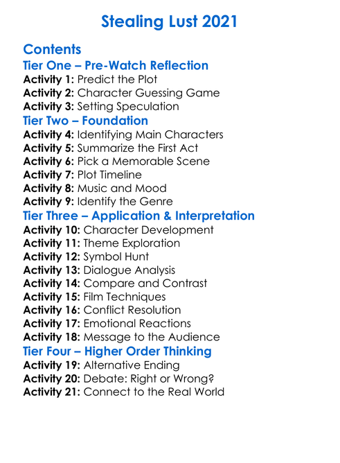 Stealing Lust 2021 Worksheet Activity Booklet
