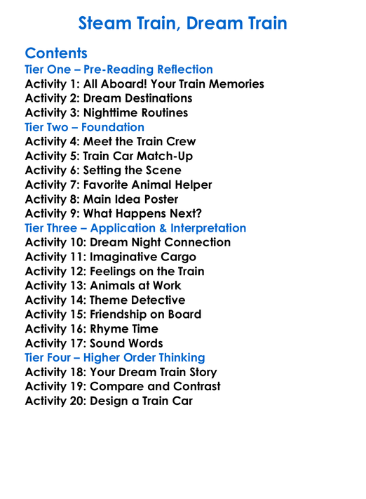 Steam Train Dream Train Worksheet Activity Booklet