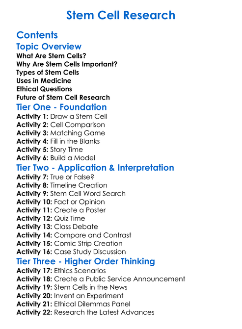 Stem Cell Research Worksheet Activity Booklet