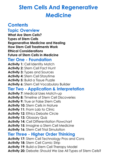 Stem Cells And Regenerative Medicine Worksheet Activity Booklet
