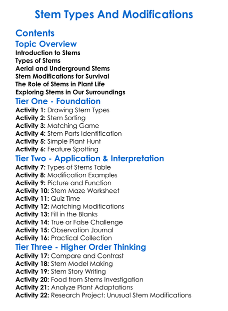 Stem Types And Modifications Worksheet Activity Booklet