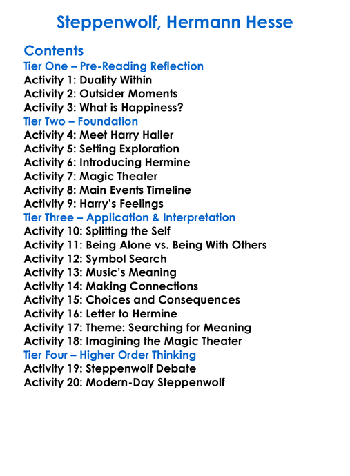 Steppenwolf Hermann Hesse Worksheet Activity Booklet