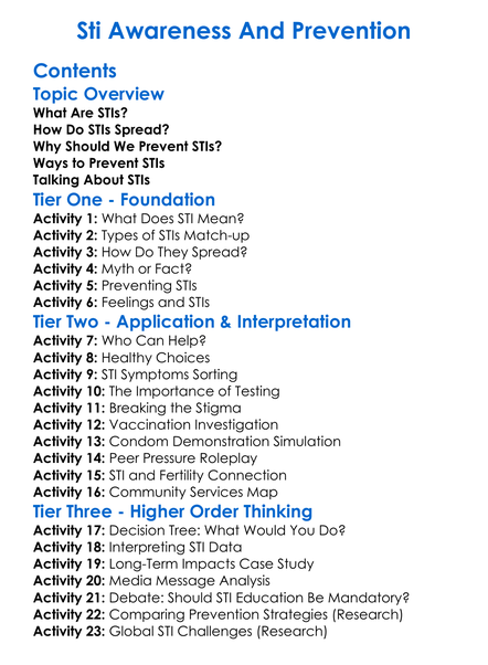 Sti Awareness And Prevention Worksheet Activity Booklet