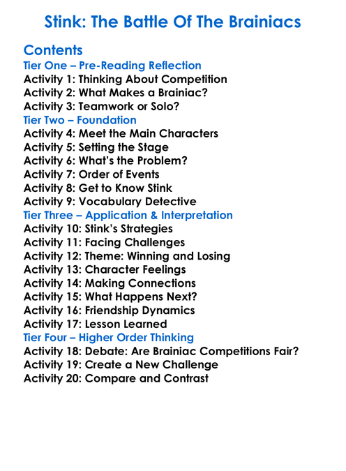 Stink The Battle Of The Brainiacs Worksheet Activity Booklet