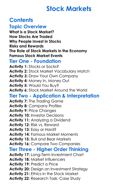 Stock Markets Worksheet Activity Booklet