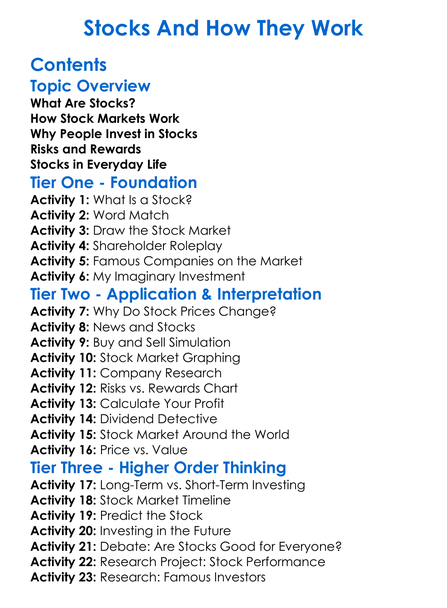 Stocks And How They Work Worksheet Activity Booklet