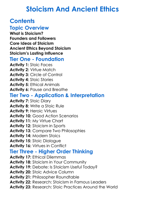 Stoicism And Ancient Ethics Worksheet Activity Booklet