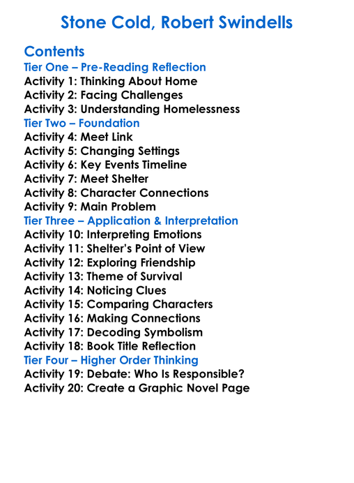 Stone Cold Robert Swindells Worksheet Activity Booklet