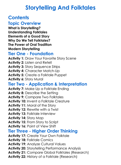 Storytelling And Folktales Worksheet Activity Booklet