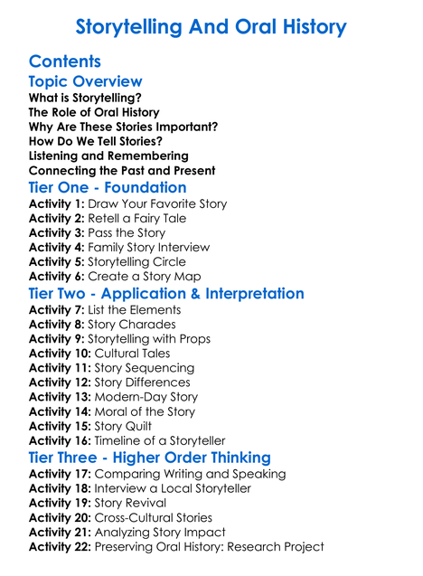 Storytelling And Oral History Worksheet Activity Booklet