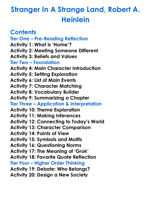 Stranger In A Strange Land Robert A Heinlein Worksheet Activity Booklet