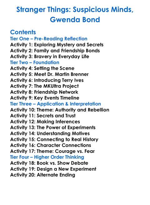 Stranger Things Suspicious Minds Gwenda Bond Worksheet Activity Booklet