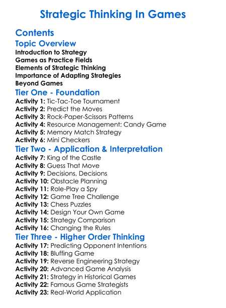Strategic Thinking In Games Worksheet Activity Booklet