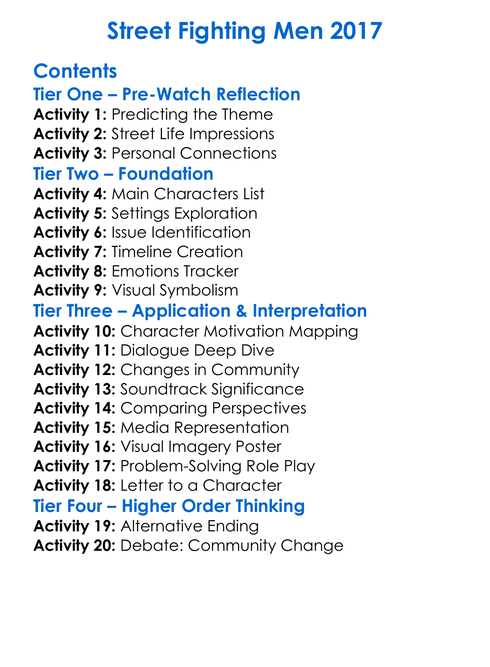 Street Fighting Men 2017 Worksheet Activity Booklet