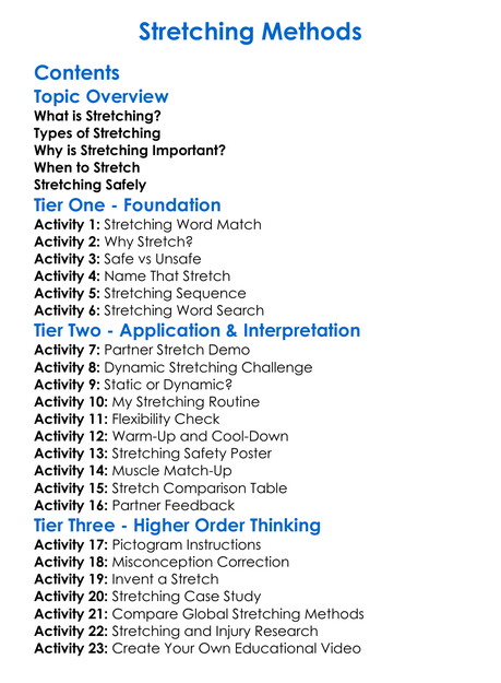 Stretching Methods Worksheet Activity Booklet