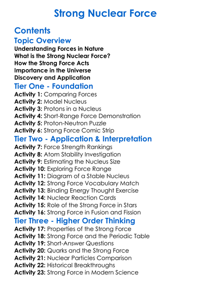 Strong Nuclear Force Worksheet Activity Booklet