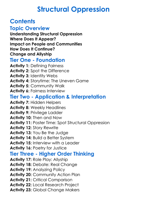 Structural Oppression Worksheet Activity Booklet