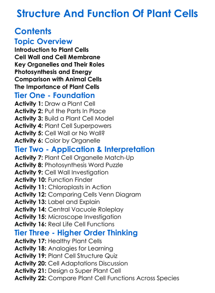 Structure And Function Of Plant Cells Worksheet Activity Booklet