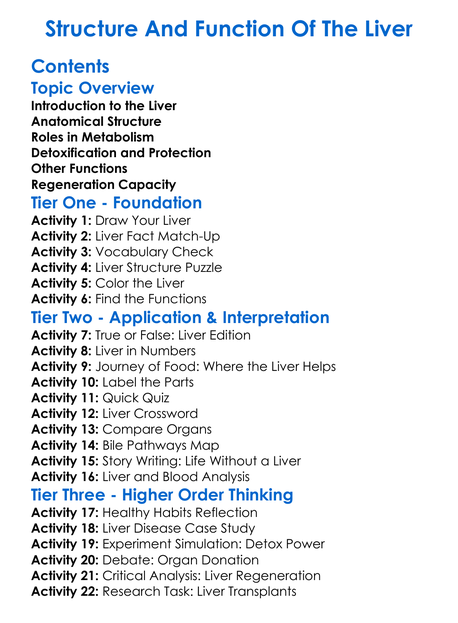 Structure And Function Of The Liver Worksheet Activity Booklet
