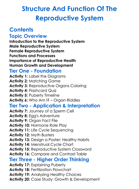 Structure And Function Of The Reproductive System Worksheet Activity Booklet
