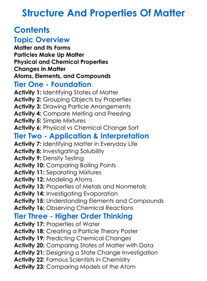 Structure And Properties Of Matter Worksheet Activity Booklet