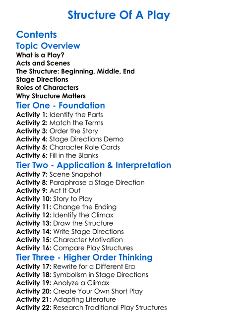 Structure Of A Play Worksheet Activity Booklet