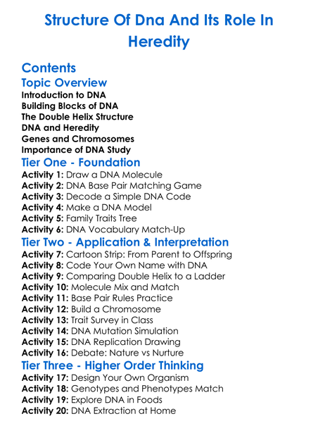 Structure Of Dna And Its Role In Heredity Worksheet Activity Booklet