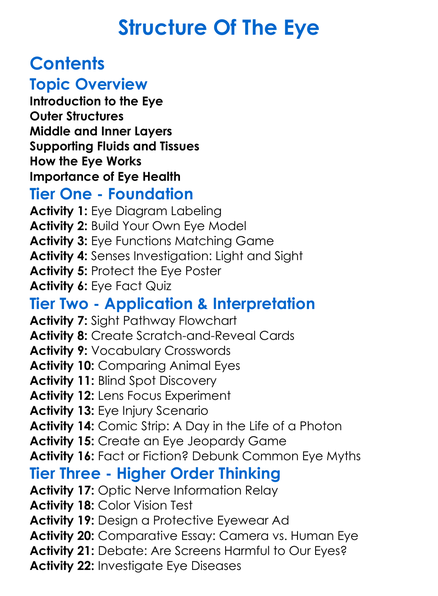 Structure Of The Eye Worksheet Activity Booklet