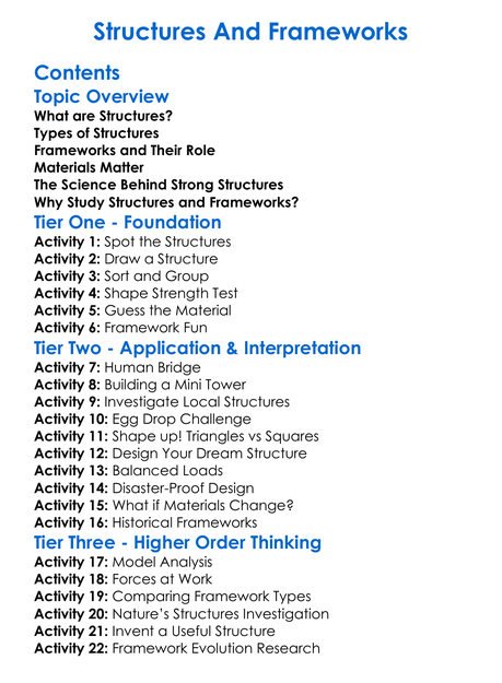 Structures And Frameworks Worksheet Activity Booklet