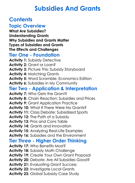 Subsidies And Grants Worksheet Activity Booklet