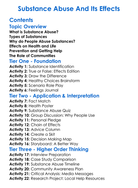 Substance Abuse And Its Effects Worksheet Activity Booklet