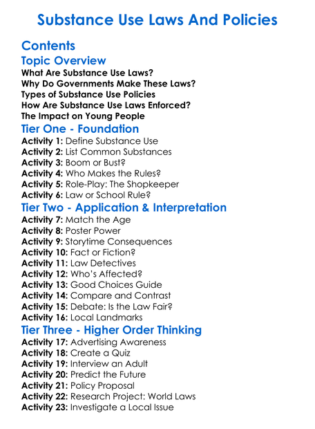 Substance Use Laws And Policies Worksheet Activity Booklet
