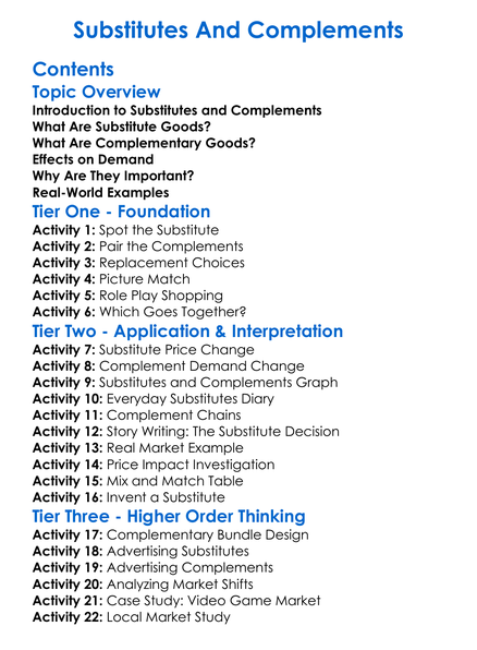 Substitutes And Complements Worksheet Activity Booklet