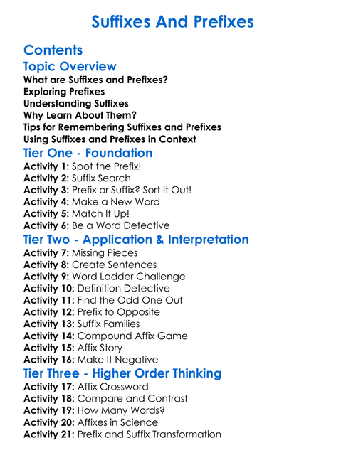Suffixes And Prefixes Worksheet Activity Booklet