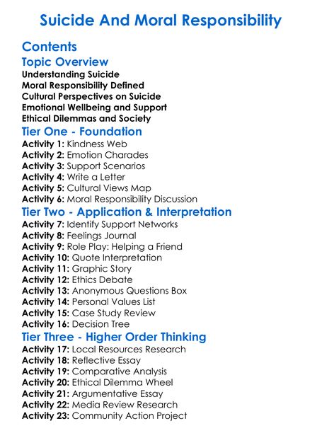 Suicide And Moral Responsibility Worksheet Activity Booklet