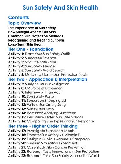 Sun Safety And Skin Health Worksheet Activity Booklet