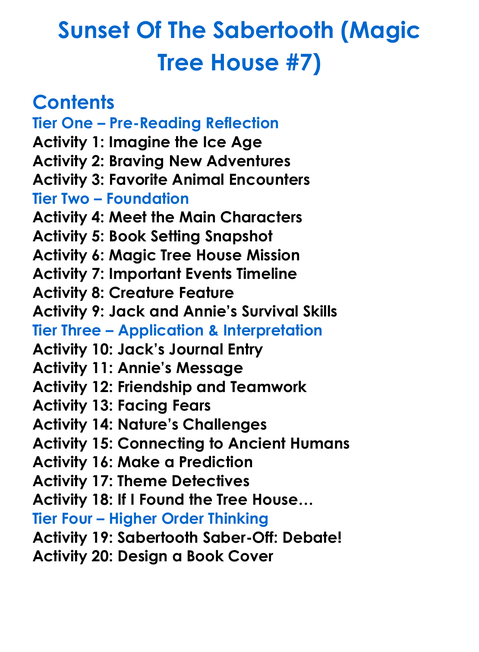 Sunset Of The Sabertooth Magic Tree House 7 Worksheet Activity Booklet