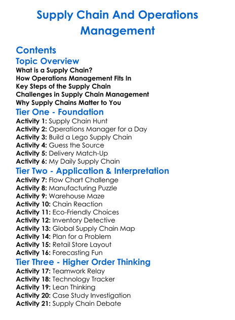Supply Chain And Operations Management Worksheet Activity Booklet