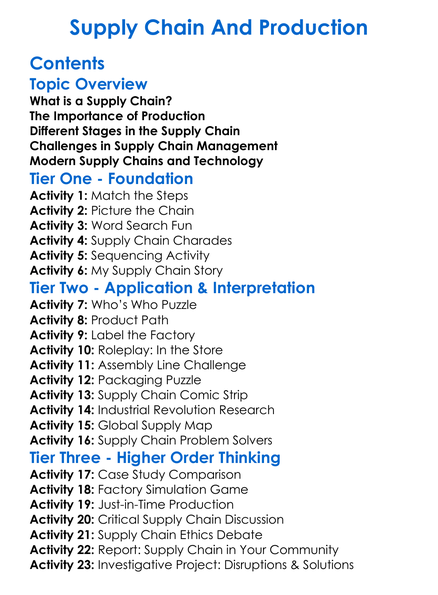 Supply Chain And Production Worksheet Activity Booklet