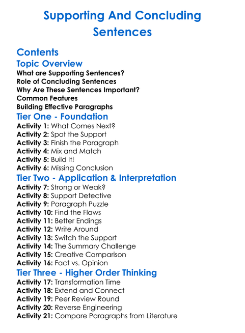 Supporting And Concluding Sentences Worksheet Activity Booklet