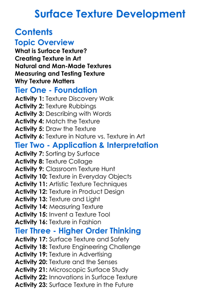 Surface Texture Development Worksheet Activity Booklet