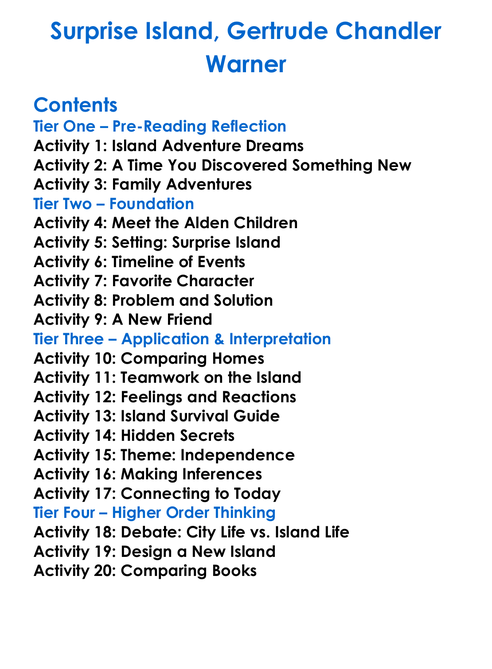 Surprise Island Gertrude Chandler Warner Worksheet Activity Booklet