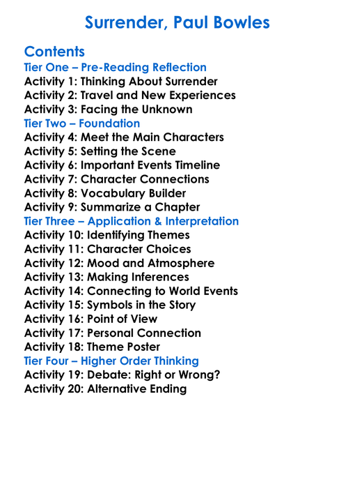 Surrender Paul Bowles Worksheet Activity Booklet