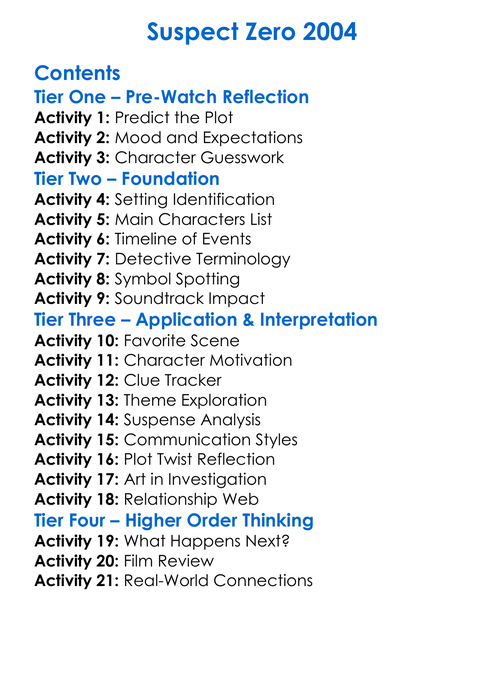 Suspect Zero 2004 Worksheet Activity Booklet