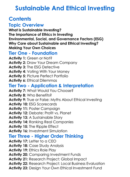 Sustainable And Ethical Investing Worksheet Activity Booklet