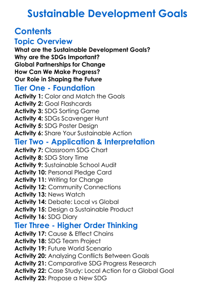 Sustainable Development Goals Worksheet Activity Booklet