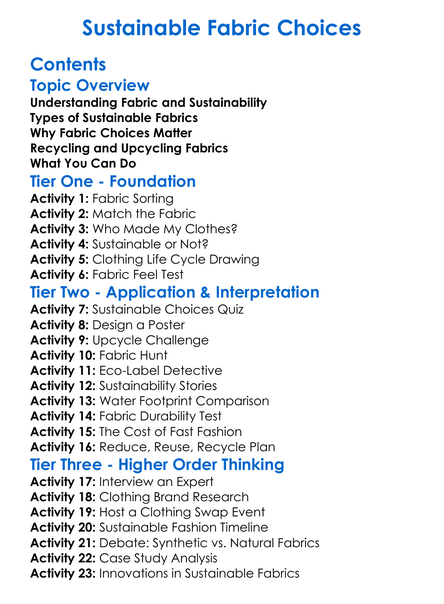 Sustainable Fabric Choices Worksheet Activity Booklet