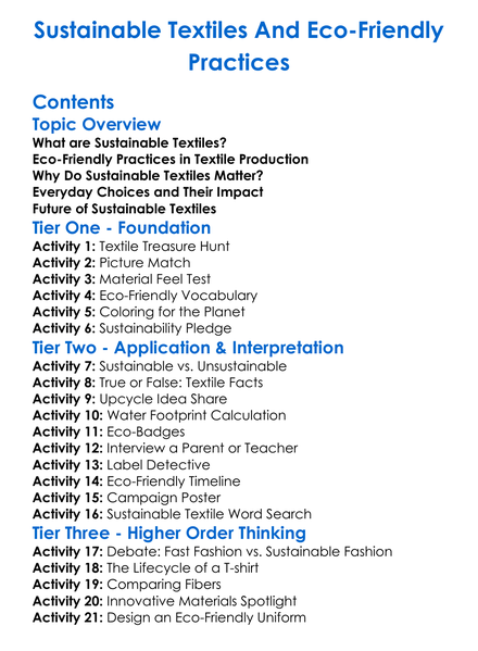 Sustainable Textiles And Eco-Friendly Practices Worksheet Activity Booklet